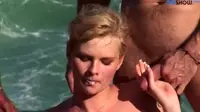 On the sun-kissed shore of a secluded beach, the scene is set for an unforgettable day of passion and ecstasy.The blonde, toned beauty and her black lover, blessed with a massive BBC cock, had planned this rendezvous for weeks.Their lustful hunger grew stronger as each day passed, knowing they were heading towards their own sexual utopia.As the waves crashed behind them, setting the mood for their intimate playground, they slowly undressed each other.The sun was warm upon their naked skin, yet they could feel a cool breeze whispering through the sand between them, making them shiver with anticipation.Their eyes locked in desire as they reveled in the carnal power they would unleash on one another.The blonde's hands glided across her partner's taut abs and muscular chest, as her fingers traced his massive cock through his boxers.The tension was palpable as she knew what lay beneath.She couldn't help but lean in to kiss his lips, their mouths melding together in a frenzy of passion as the salty sea air filled their lungs.With a husky whisper, the blonde gestured to the soft, sun-warmed sand before them.She wanted him to make love to her there, cradled by nature's most sensual embrace.The man's gaze met hers with a mix of adoration and lustful hunger as he nodded in agreement, his hands eagerly moving to pull down her bikini bottoms.As their lips parted and she tasted the ocean on his tongue, she could feel his fingers exploring her body, making her tremble with need.She reached down to fondle him through his shorts, stroking and teasing his cock, causing him to groan in pleasure.He reached around to caress her ass cheeks, pulling them apart to tease her tight hole with his thumb.They locked eyes again, the blonde's lust-filled gaze commanding her lover as she rose onto her hands and knees on the beach.Her bikini now discarded on the shore, her body glistened with sweat from the sun as she arched her back to offer him complete access to her tight pussy and ass.The black man knelt beside her, his rock-hard dick throbbing as he looked over her sultry pose.He wasted no time in lining himself up to penetrate her, a bead of pre-cum forming at the tip of his BBC cock, waiting to slide inside her.He took slow, measured thrusts as they began their lovemaking ritual on the beach.The sun's warmth and the waves' crashes played the perfect soundtrack for this intimate connection, each movement sending shivers down the blonde's spine.Meanwhile, her dark-skinned lover's fingers found their way to her clit, rubbing in rhythm with the blonde's thrusts from behind.Their bodies were covered in a thin layer of sand, adding an extra sensory layer to this wild beach threesome.The blonde could feel her orgasm approaching as the sun's heat mixed with the cool breeze on their skin.As her climax grew closer, her body bucked and arched uncontrollably, leaving her gasping for breath in between deep moans.Her lover increased his thrusting to match her tempo, both bodies moving together in tandem like a well-choreographed dance.The blonde's body writhed in pleasure as she could feel the man's seed filling her up from behind, mixing with the sand on her sex.The climax came crashing down upon them, leaving the trio drenched and panting on that sun-drenched beach.Their faces, flushed with passion, couldn't help but share a knowing smile as their breathing began to stabilize.They had shared an experience that no one would ever forget, basking in the afterglow of the most incredible sexual adventure.In that moment, they knew they would return to that sun-kissed beach, their passion and lust forever rooted within its sandy embrace.The man's BBC cock had claimed her body, the woman's toned muscles now fused with his in a beautiful way of belonging.They had become one in the most sensual place possible - a sun-drenched shore.